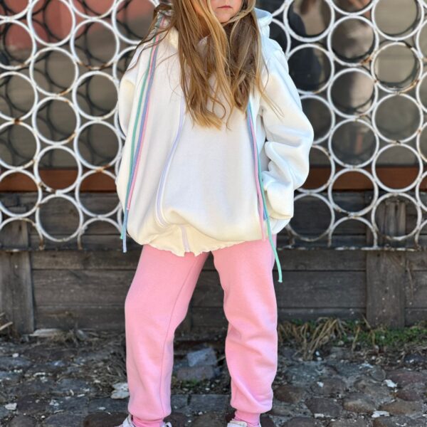 Spodnie dresowe z ozdobnym ściągaczem cukierkowy róż dresówka drapana 80% bawełna 20% poliester