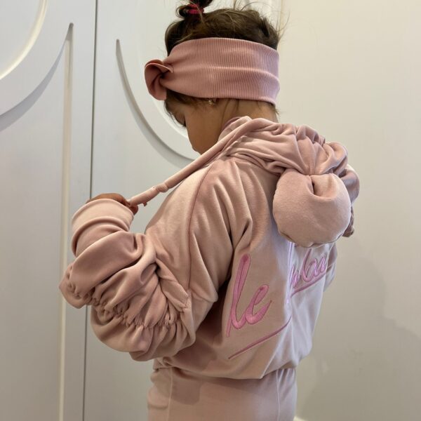 DRES WELUROWY OPCJA Z DZWONAMI LUB GETRAMI Velvet w kolorze pudrowego różu to szlachetna tkanina przypominająca aksamit. Wraz z nią