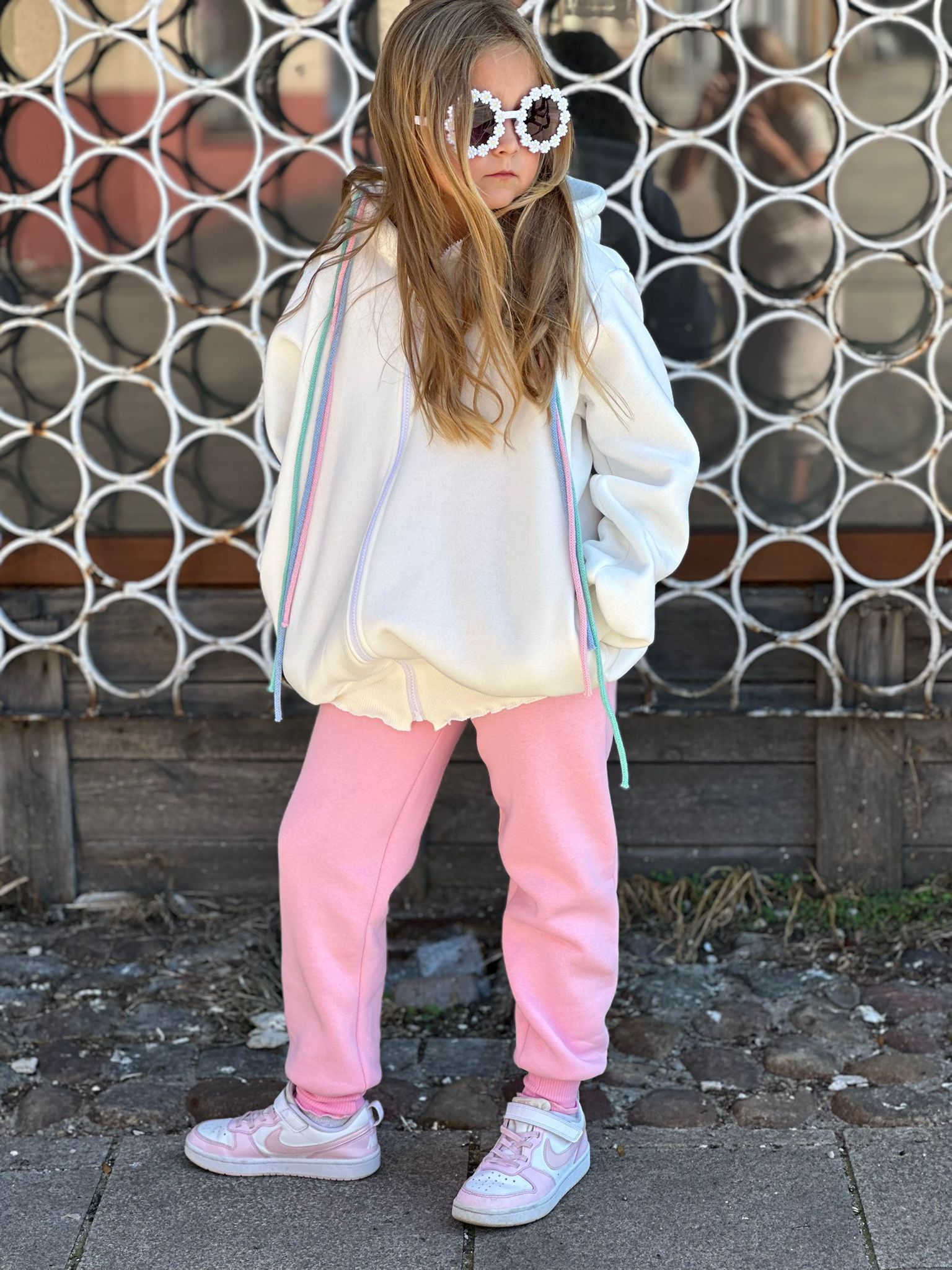 Spodnie dresowe z ozdobnym ściągaczem cukierkowy róż